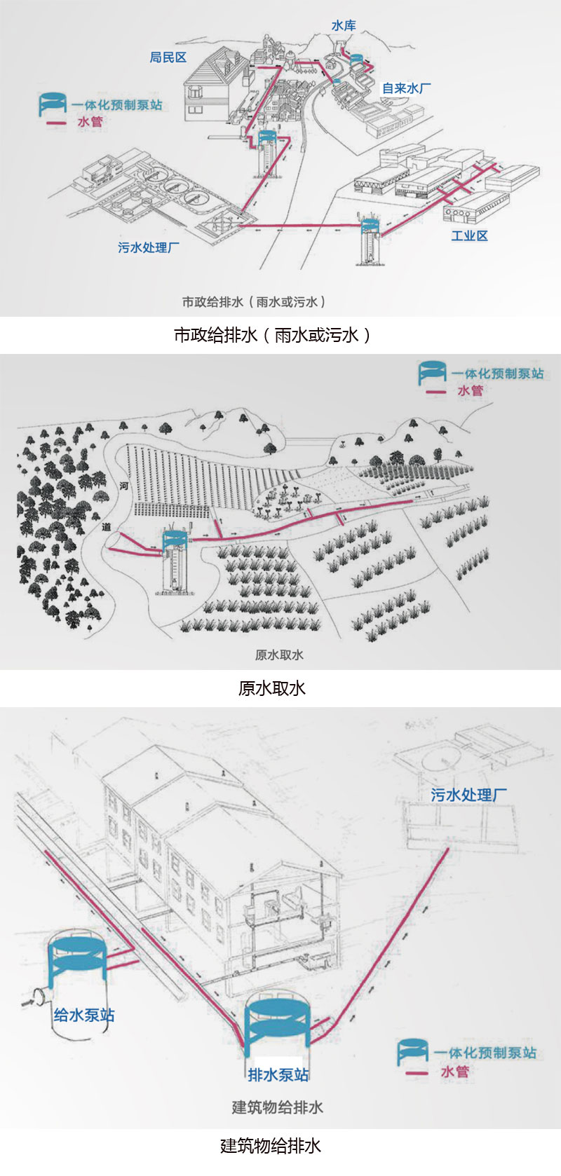 生活小區(qū)或農(nóng)村社區(qū)污水的收集與輸送;